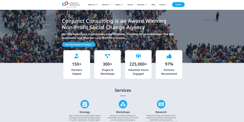 It’s among my favourite examples of consulting websites. It does a great job of presenting a business in a professional and structured way. It highlights key services, features case studies, and includes a quick way for visitors to sign up or reach out. The layout is built around spacious sections with headings, visuals, and text blocks that make the content easy to scan.