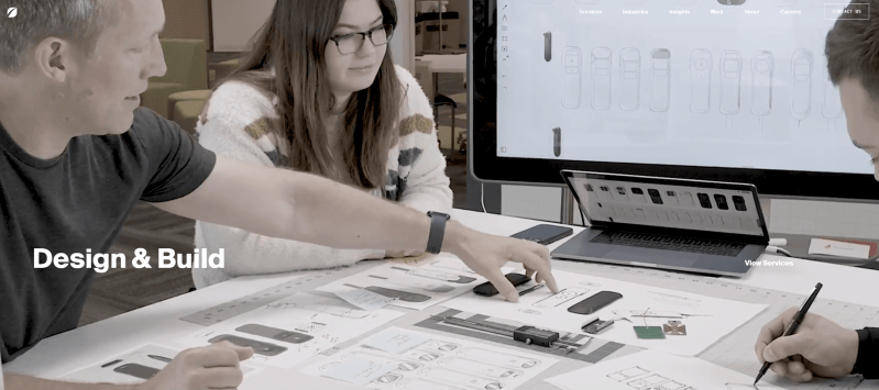 The homepage highlights the company’s key directions (strategy, design, software, and hardware) with bold sections and interactive elements. As you scroll, the content appears gradually, which keeps the experience engaging and easy to follow. This approach works well as it guides visitors through the company’s capabilities step by step.