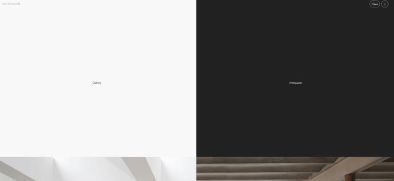 Vincent Van Duysen’s website exemplifies modernist principles, with strict lines, clean shapes, and natural materials. The black-and-white palette evokes restrained luxury and a sense of depth, creating a serene and sophisticated browsing experience.