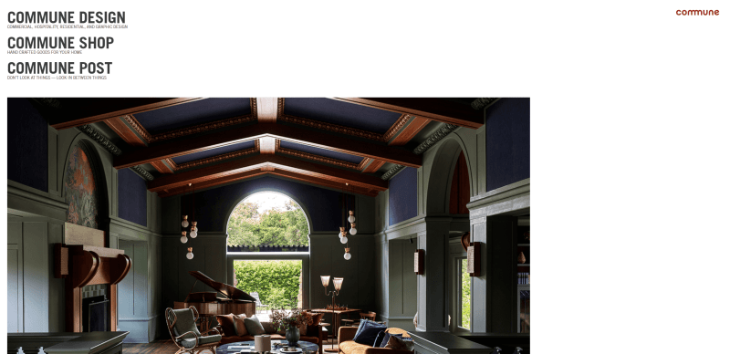 Commune Design captured my attention with graphic sophistication and a distinctive approach to presenting content – easily one of the most refined examples of interior design websites. The layout is built on contrasts: natural textures meet bold color accents, all supported by carefully curated typography that reinforces the studio’s creative identity.