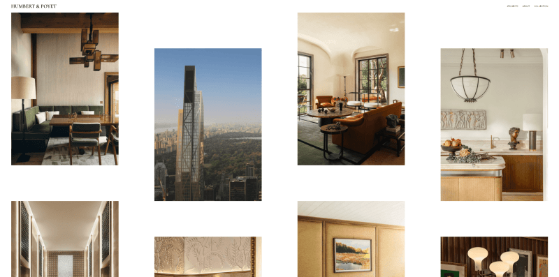 Humbert & Poyet’s website focuses on luxury and architectural precision, combining rich tones, creative textures, and meticulous attention to detail. The design shows the quality of materials and the elegance of form, creating a sophisticated visual experience.