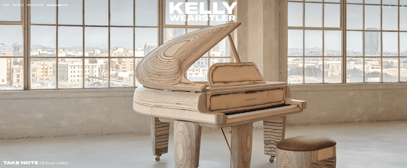 Kelly Wearstler reflects her unique approach, which includes art deco, eclecticism, and bold solutions. The main page captured my attention with its bright colors, unusual textures, and artistic presentation of content.
