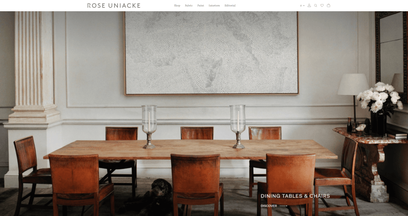 Rose Uniacke reflects her philosophy: restrained elegance and warm, neutral tones. The clean, calm interface features textures, materials, and the art of balance.