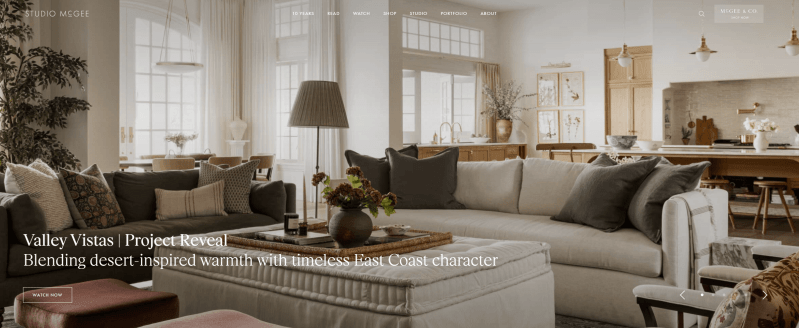 Studio McGee impresses with the aesthetics of modern concepts, classic, and trendy solutions. The clean, airy interface allows clients to view the details of the interiors, and carefully selected photos show the studio’s corporate features.