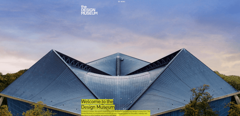 Another great example of museum websites, a Webby Awards winner. The whole web portal feels bright, bold, and very on-trend. The first thing that caught my attention was the header photo of the exterior. It looks like a piece of art on its own. And right above it, there’s a super compact menu that feels clean and satisfying to use.