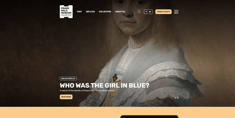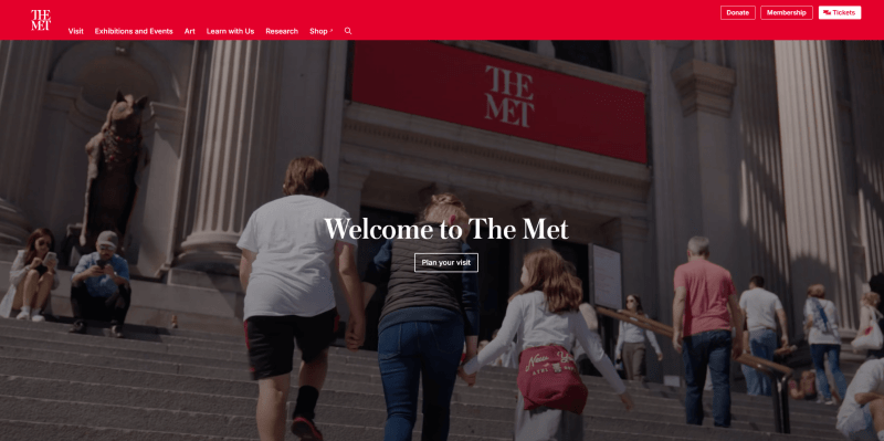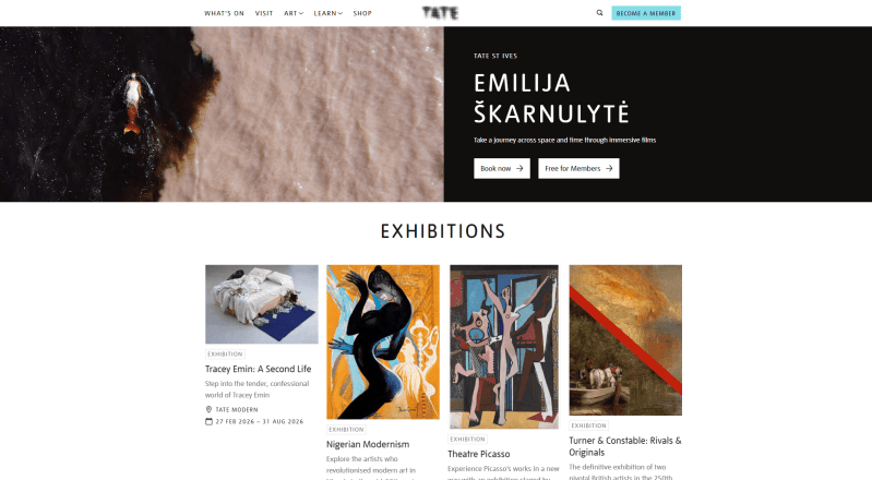 This is among the most beautiful and well-organized museum website examples. The first thing that draws attention is the banner featuring a video alongside a clear “Plan your visit” button. In the best tradition of effective design, CTAs appear in every main page block, which I find especially smart for a modern art site.
