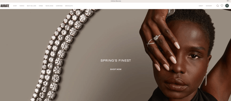 The Aurate website feels unique for its elegant design and attention to detail. Quotes and short descriptions for new arrivals, quality, and other features immediately draw attention and make the content engaging.