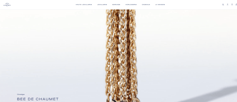 What impressed me about the Chaumet website is its homepage, which is packed with different sections: from the hero image showcasing offers to sliders featuring trending models. One of the most beautiful jewelry websites.
