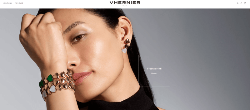 The Vhernier website has a modern layout that relies on high-quality images and visuals. The headings and descriptions are short and to the point, which I find keeps the site clean and easy to explore.
