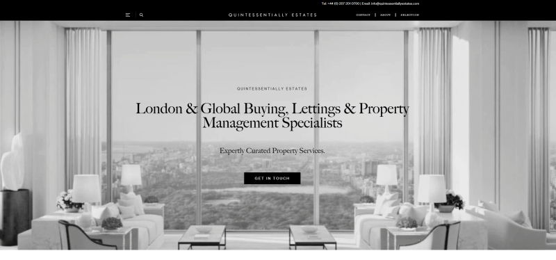 This site presents a clean, sleek design that perfectly suits a high-end real estate firm. I like the hidden menus. They keep just a minimalist header and a contact button, allowing visitors to focus entirely on the main content.