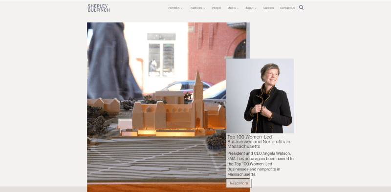 Visitors are immediately immersed in the unique Shepley Bulfinch universe, exploring the company’s buildings, standout projects, and even glimpses of a relaxed office atmosphere. The thoughtful mix of photos and videos keeps the site interactive and engaging, making it a great example of a modern architecture website.